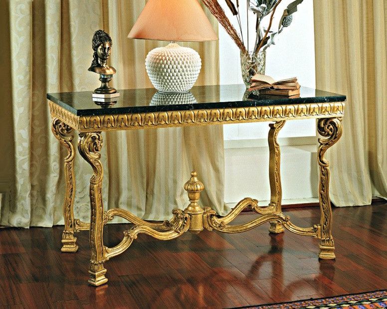 Резная консоль покрытая золотом. Столешница - мрамор.